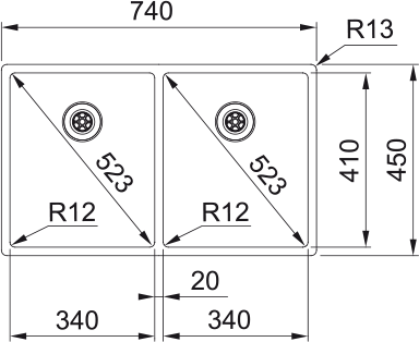340 x 410 x 200; R12 mm