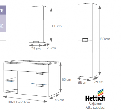 Mueble de baño suspendido, 2 cajones y 1 puerta Y 2 estantes