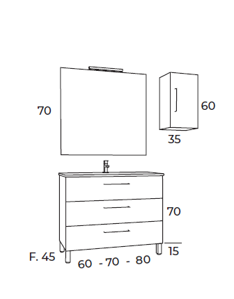 Disponible en medidas de 60 70 y,80, de ancho 70cm de Alto ,y 44,5cm de Profundidad.