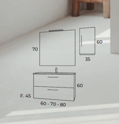 Disponible en medidas de 60, y 70,80, de ancho 70cm de Alto ,y 45cm de Profundidad.