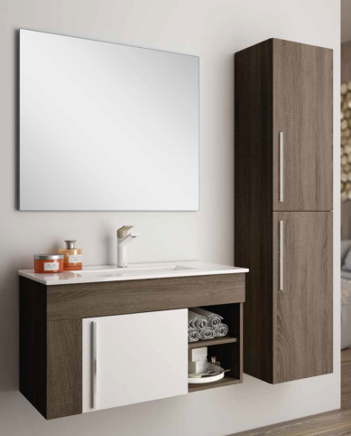 Conjunto de baño completo, de fondo reducido formado por Mueble mas lavabo mas Espejo.