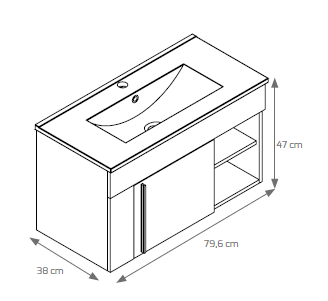 Para la medida de 80cm se diseña con puerta de y 2 estanterias
