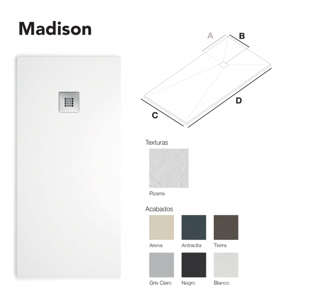 Plato de ducha fabricado en resina, tintado en masa, de fácil instalación y reparable. Destaca por su alta resistencia, acabado