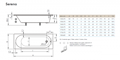 Bañera acrílica exenta, con faldón frontal y latera, o para empotrar, modelo Serena fabricado por Sanycces.