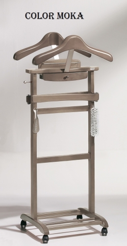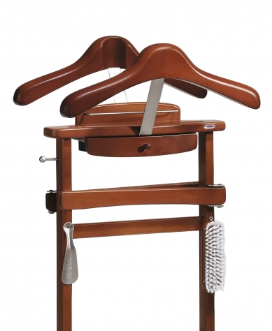 Fabricado en madera de haya y terminación con hierro cromado. Galán clásico muy elegante a la vez que práctico. Ideal para tu dormitorio. Con pequeño cajón incorporado.