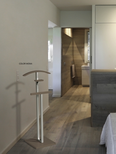 Fabricado en madera de haya y terminación con hierro cromado. Galán clásico muy elegante a la vez que práctico. Ideal