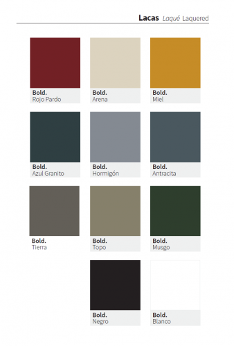 Disponible en varios colores, según carta de colores Bold disponible en galería de fotos.