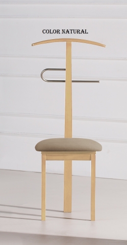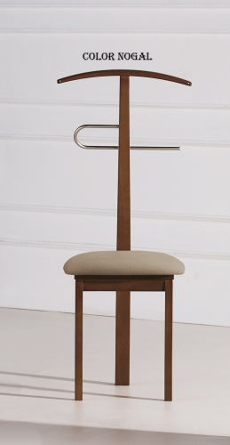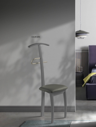 Galán silla fabricado en madera de haya y terminación con hierro cromado. Asiento terminado en polipiel de primera.