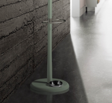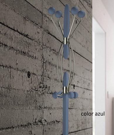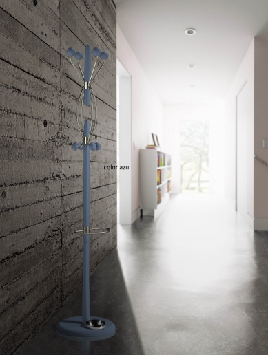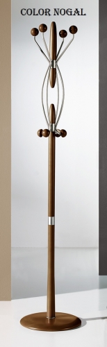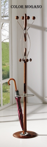 Perchero de pie de 184 cm de alto y 37 de ancho fabricado en madera de Haya alta calidad con chapado natural o lacada y metal cromo satinado con 8 colgadores y soporte de paraguas. Disponible en 19 colores a elegir.