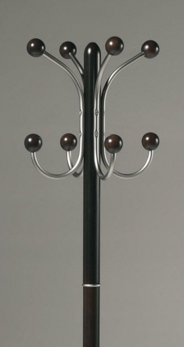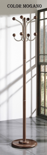 Perchero de pie de 170 cm de alto y 35 de ancho fabricado en madera de alta calidad con chapado natural o lacada con 4 colgadores dobles en cromo satinado