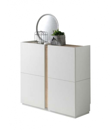 Zapatero sencillo y práctico fabricado en melamina. Dispone de 2 puertas que sobresalen
