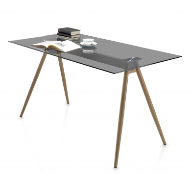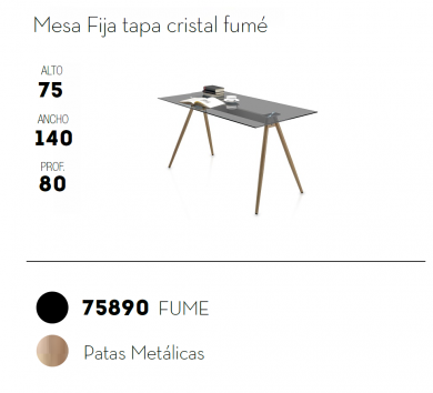 Mesa fabricada con estructura metálica acabado marrón y tapa de cristal color fumé. Ideal para cocinas y comedores. Medidas: 75x140x80 cm. No incluye sillas.