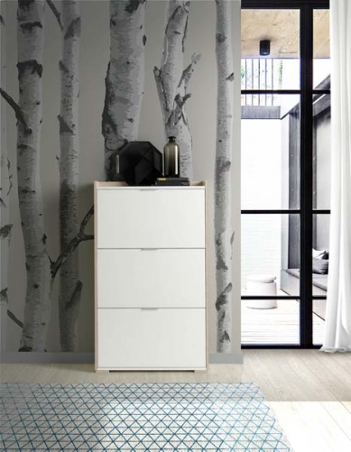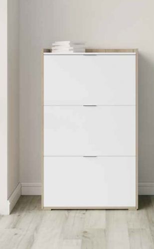 Zapatero funcional y sencillo fabricado en melamina con tres puertas abatibles y tiradores