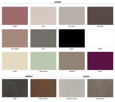 Acabados en Madera de Pino con tableros de 18mm, los acabados en lacado son en acabado texturizado rascado, también con acabado metálico, se pueden combinar los acabados, en madera o en lacado .