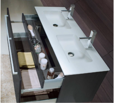 Posibilidad de instalar lavabo de porcelana, de cristal o resina.