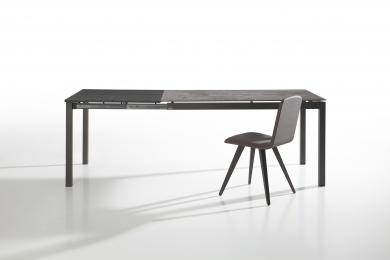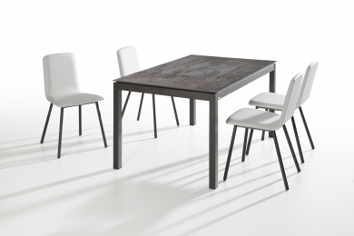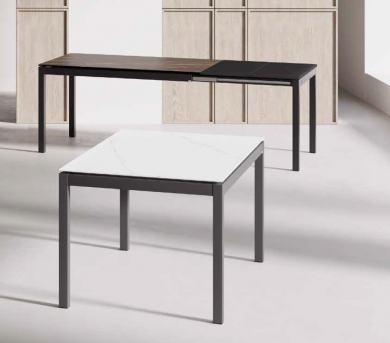 Doble extensible de 40+40 laminado (sistema libro). Patas con ruedas para facilitar la apertura.