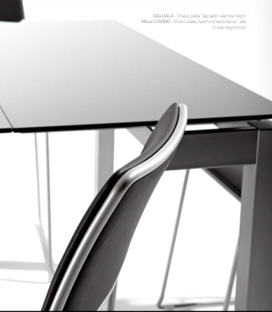 Chasis y patas: Tubo acerado pintado en epoxi plata. Patas de 5X5 cm.