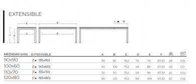Mesa de cocina, con apertura lateral de 45cm,con desplazamiento de patas, con ruedas