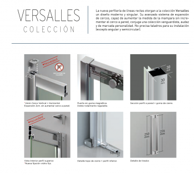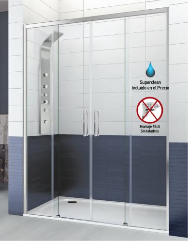 Mampara 2 Puerta corredera y 2 fijos Versalles,de fabricación nacional.
