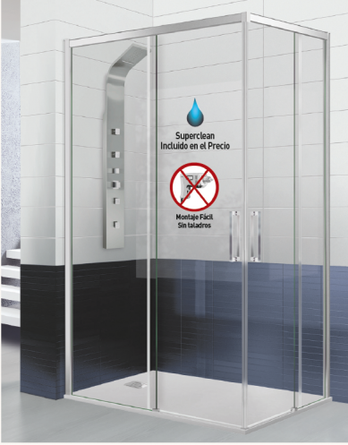 Mampara angular 2 Puerta corredera y 2 fijos ,de fabricación nacional.