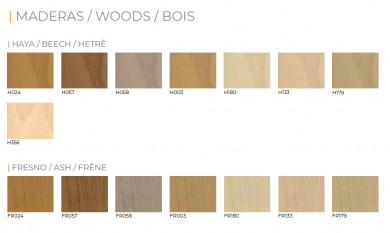 • Carcasa : Tapizada, en varios acabados o en acabado Haya y Fresno