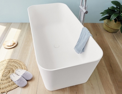 Bañera exenta en fundición mineral Solid Surface, material muy resistente y facil de mantener,