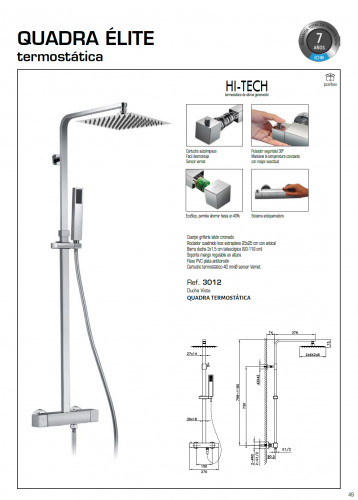 La Ducha telescópica Round Élite termostática tienes las siguientes características técnicas: