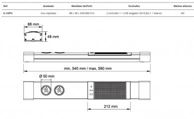 · Medidas: 88 x 48 x 540/590 mm