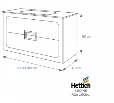 Mueble con 2 cajones de gran capacidad de cierre amortiguado, Guias Hettich