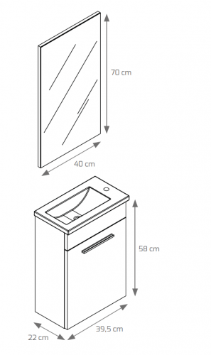 Opcionalmente, se puede comprar Espejo, luna pulida de 40x70cm