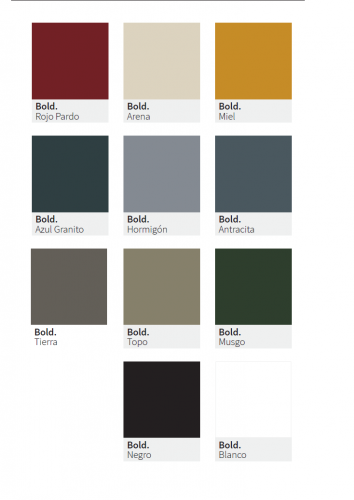 Disponible en varios colores, según carta de colores Bold disponible en galería de fotos.