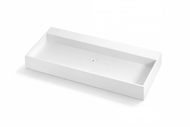 Su diseño rectangular de líneas limpias lo convierte en un lavabo perfecto para instalar sobre mueble, aportando un estilo contemporáneo y sofisticado al espacio.