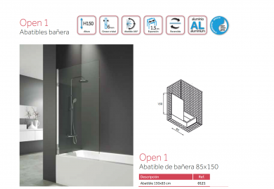 Esta mampara está disponible en cristal transparente o serigrafía frost plus, ambas en stock y entrega inmediata,