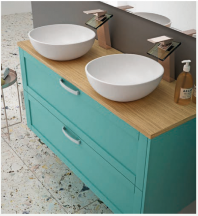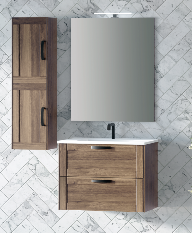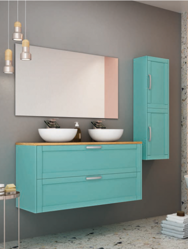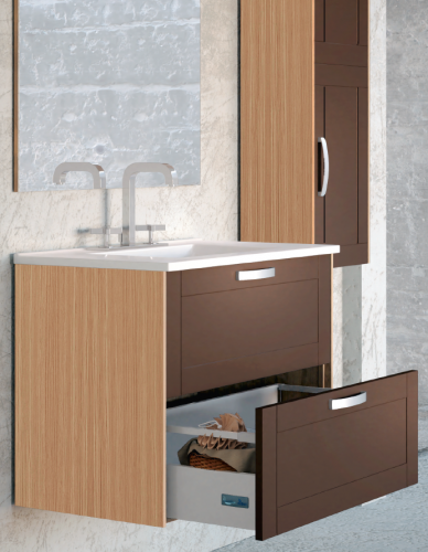 Mueble de baño con encimera cerámica, fabricado por Campoaras, fábrica española situada en Córdoba, con gran prestigio en el sector.
