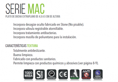 Fabricado en textura pizarra y desagüe oculto en uno de sus lados.