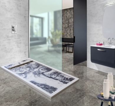 Fabricado con textura pizarra y desagüe oculto la serie París es una exquisita