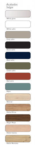 Los cajones incorporan guías ocultas con cierre amortiguado, garantizando un deslizamiento suave y silencioso, y presentan un elegante interior en acabado Negro TX. El tirador es de color negro en todos los acabados, excepto en los colores Blue, Red y Green Satin, donde se suministra a juego con el acabado del mueble.