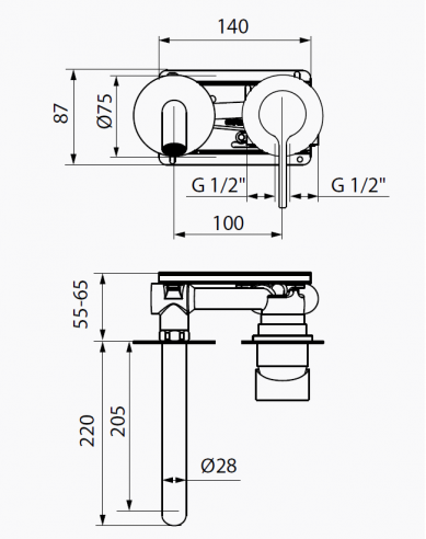 Lavabo Monomando de empotrar sin válvula clic-clac TIME