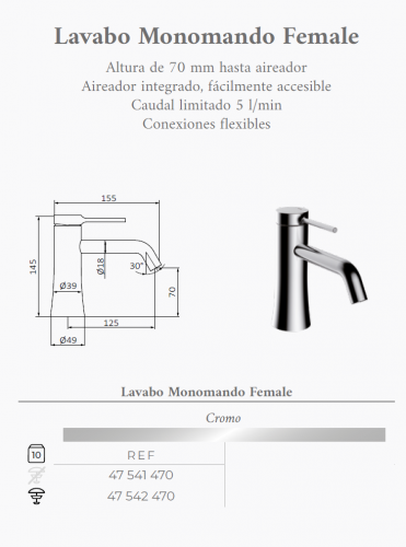 Lavabo Monomando Female sin válvula clic-clac TIME