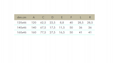 Medidas: largo 120 o 140 o 160 cm x ancho 46 cm x altura 10 cm