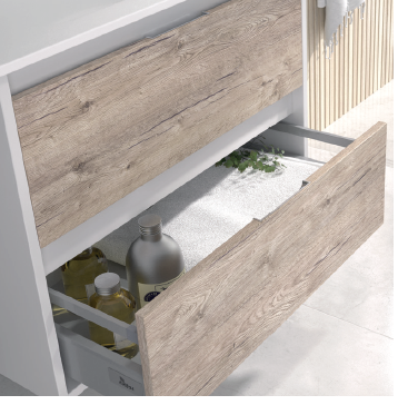 Disponible en 5 acabados con tableros de 19 mm en todo el mueble,los costados siempre en blanco.