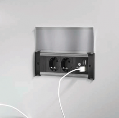 Las líneas reducidas de Kapsa lo convierten en una regleta de enchufes orientada hacia el ahorro de espacio. Está