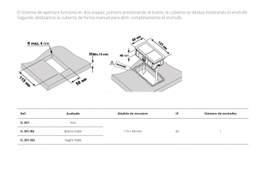 enchufe. Diseñado con sólo 40 mm de profundidad y de fácil instalación desde la parte frontal o superior,