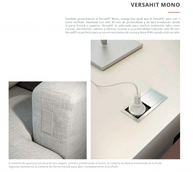 su profundidad reducida: sólo 40 mm, VersaHIT es perfecto para su uso en encimeras de cocina y tiene IP44