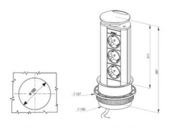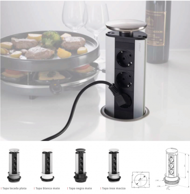 Energy box escamoteable con 3 enchufes para enrasar y que quede oculto en la