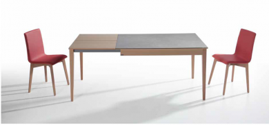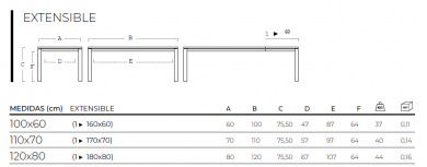 Extensible en Chapa Haya o Chapa Fresno, mismo acabado que patas, con ruedas ocultas en el extensible para mejor apertura.
