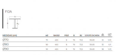 Pie de acero de 8cm, Base de 49,5cm de diametro, soporte de 30x30cm