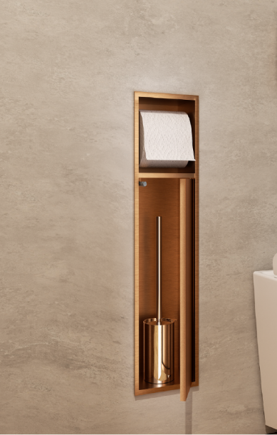 Vertical de 17x60cm, escobillero empotrado con porta-rollo.