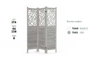 "Biombo de madera con calado central, formado por tres módulos de 46x176 cm. cada uno, unido