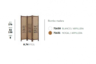 "Biombo de madera, formado por tres módulos de 46x176 cm. cada uno, unido con